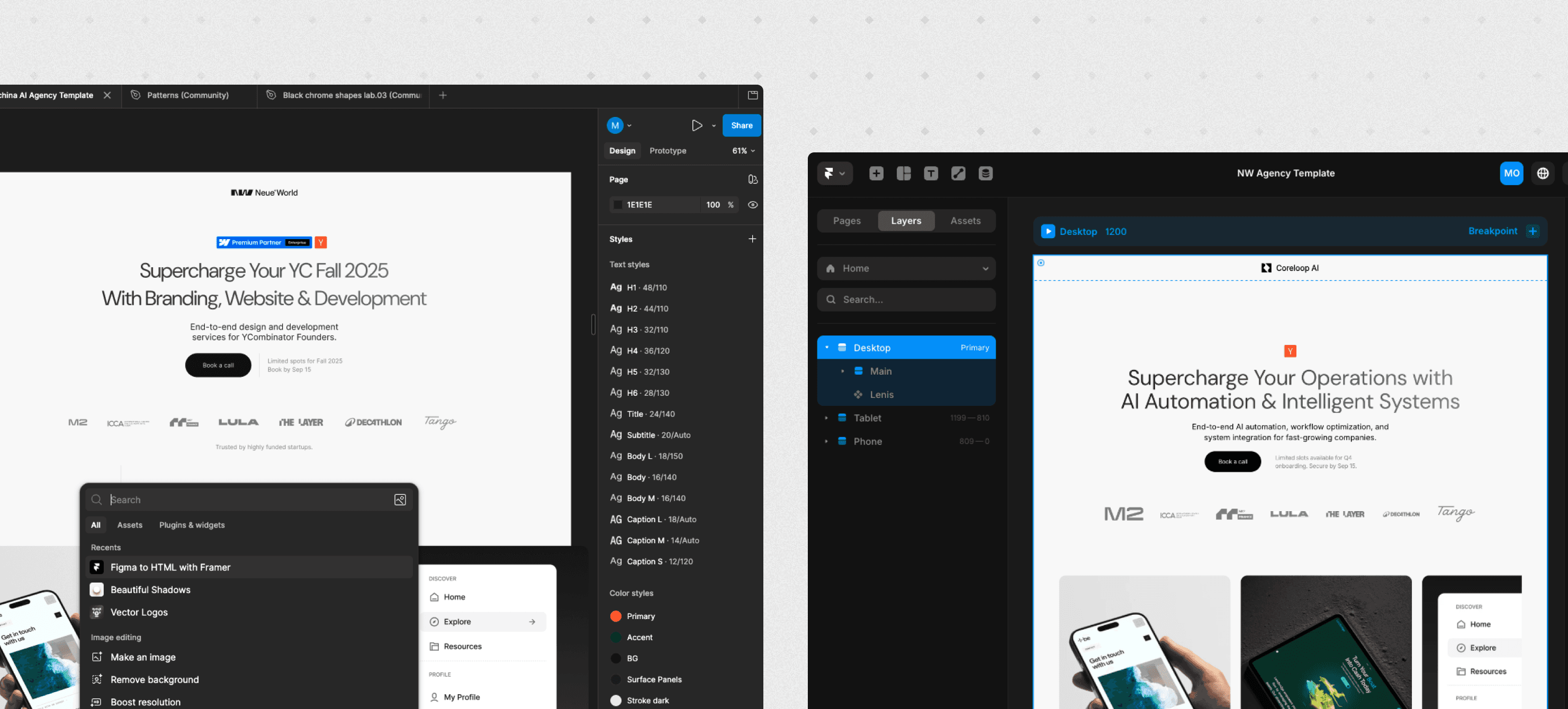 The Figma to Framer plugin lets you copy layers, components, and full frames directly from Figma and paste them into the Framer builder. This eliminates the traditional "designer hands off a static file, developer rebuilds it from scratch" tax that slows most web projects down.
