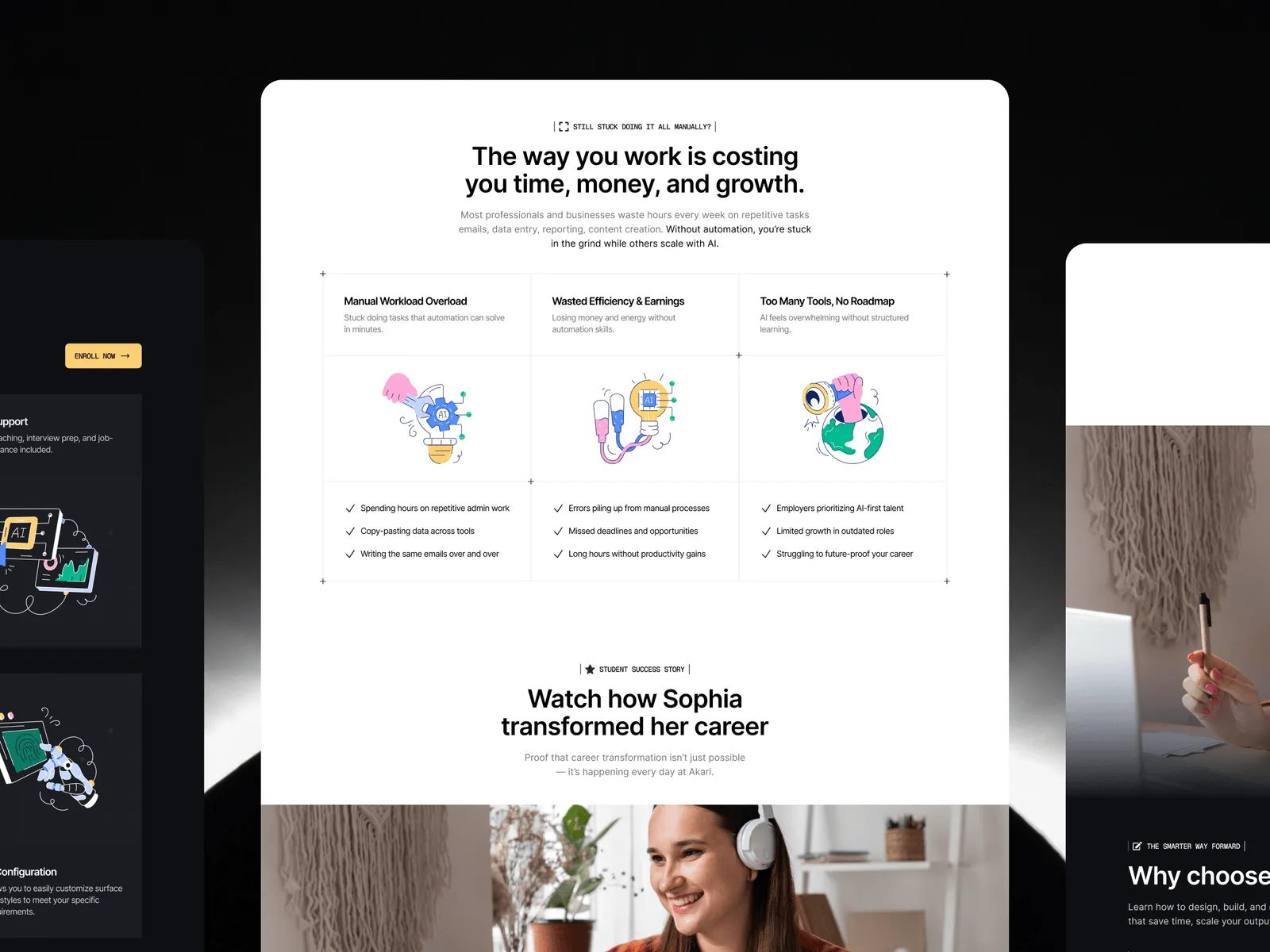 Akari is a premium, high-converting landing page template built specifically for course creators in AI, automation, and future-forward tech education.