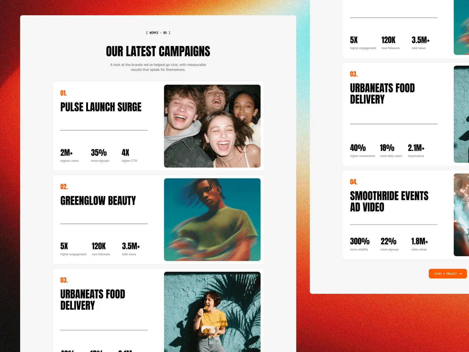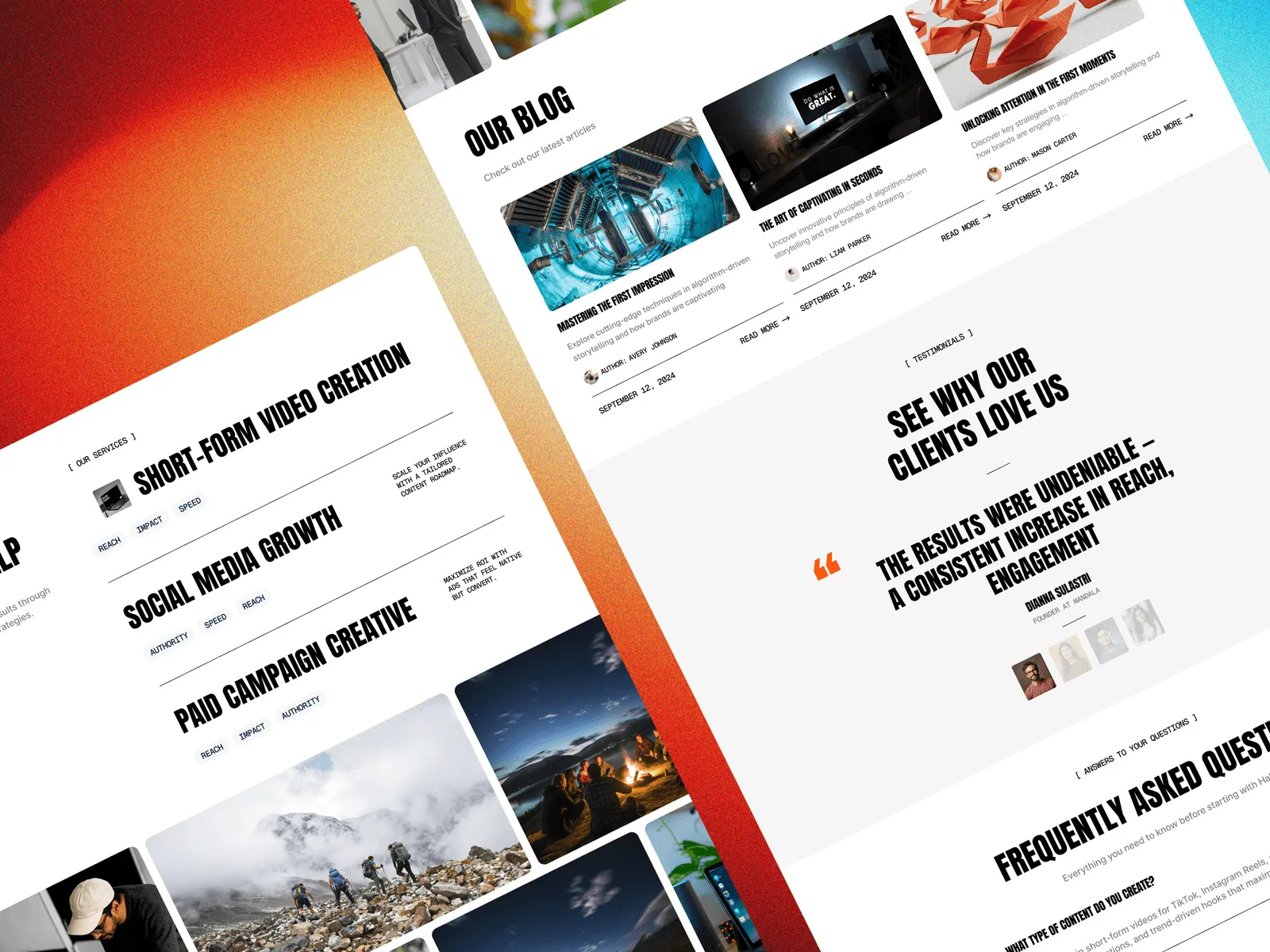 Home – High-impact landing layout with hero, services, results, testimonials, and strong CTAs