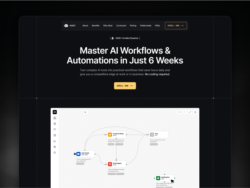 - Home – A persuasive hero section with social proof and strong calls to action.
