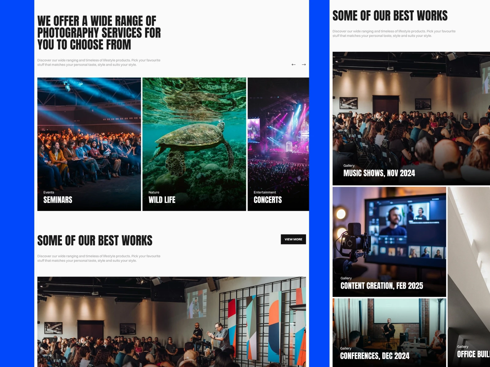 Works – Showcase featured photography projects in an organized, gallery-style layout.