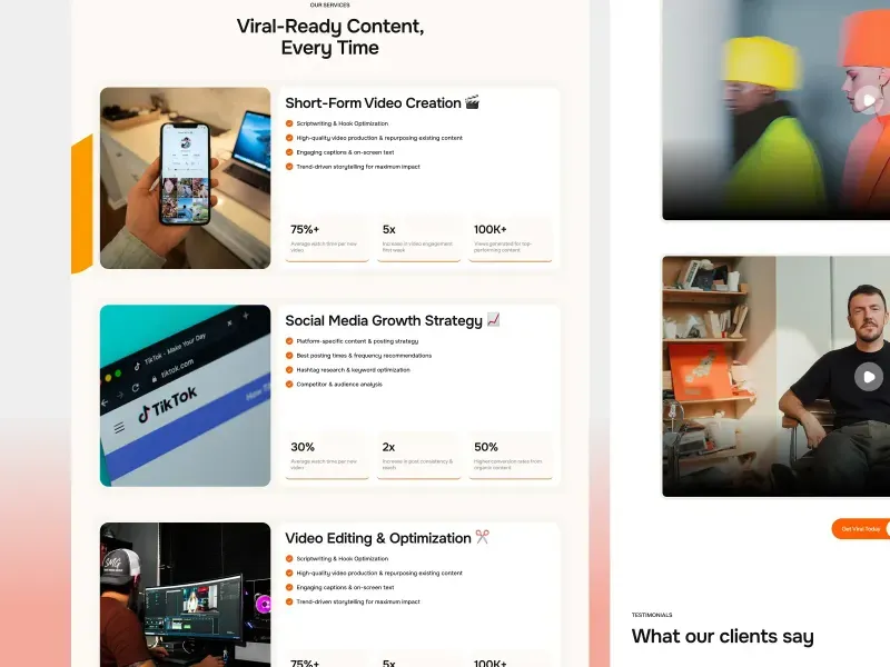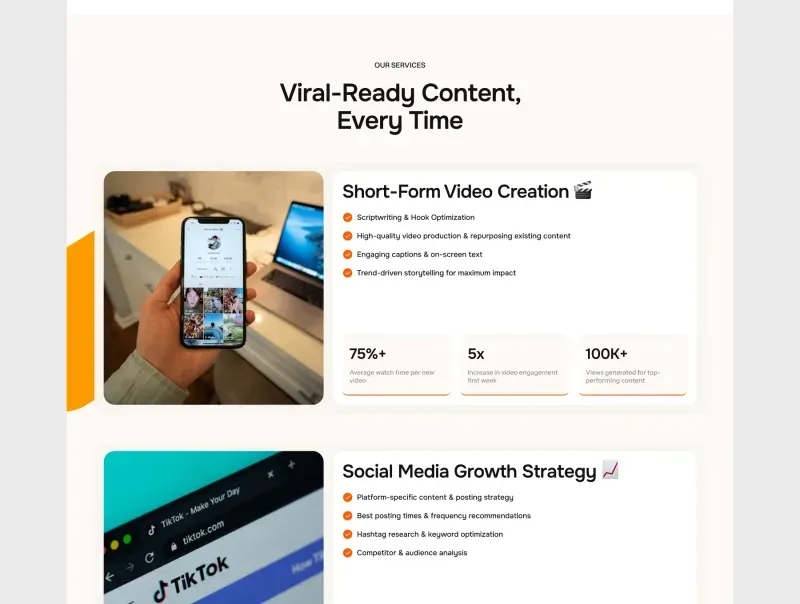 Built for agencies that specialize in short-form video content, Renderly is designed to convert visitors into long-term clients. Its modern aesthetic, strategic layout, and compelling call-to-actions ensure your brand stands out in the competitive digital marketing space